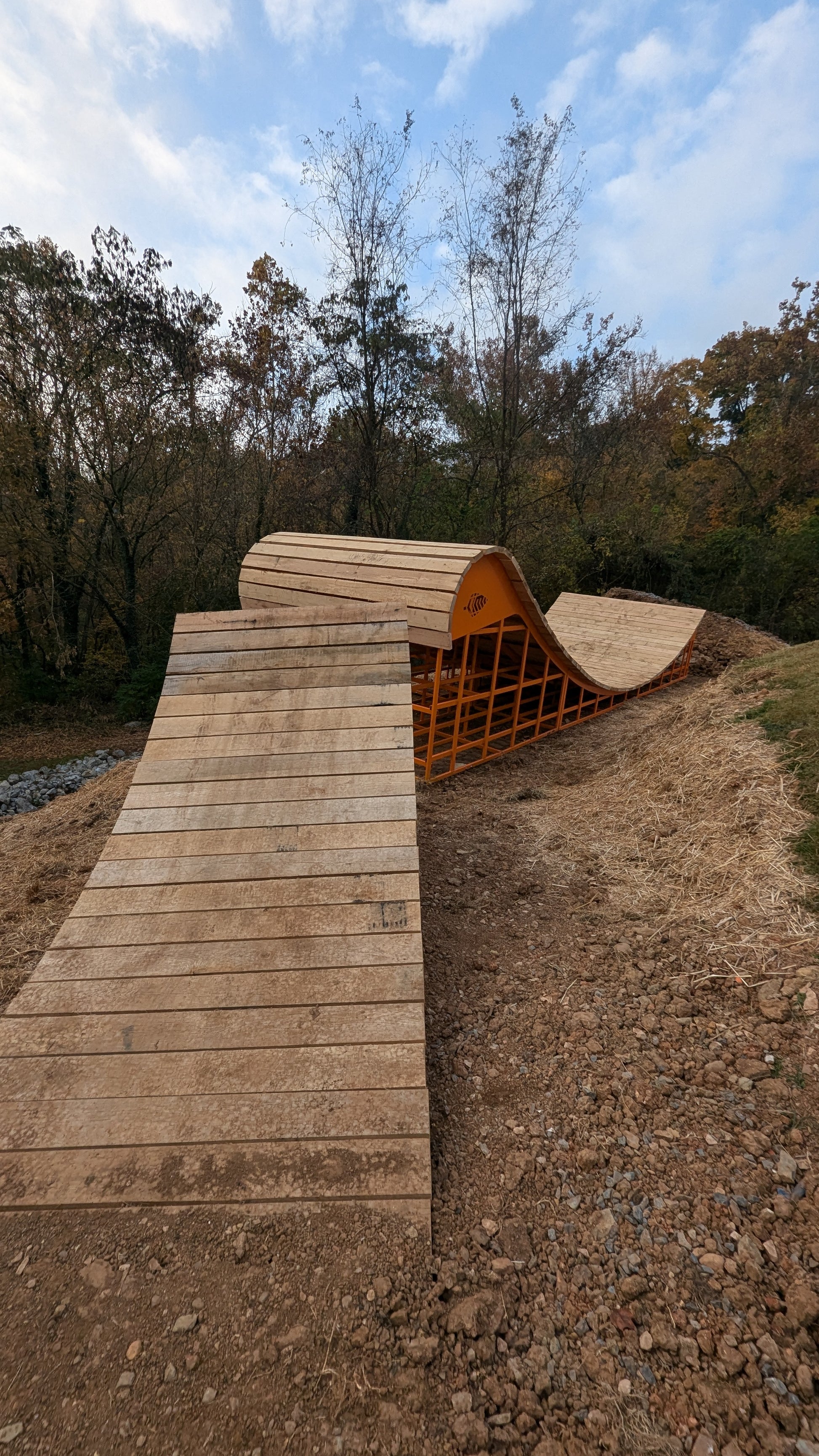 The Mountain Bike On / Off Bike & Whale Tail features are designed to enhance rider control and stability across diverse terrains. Its optimized shape optimizes balance and handling, enabling riders to confidently transition between dirt and ramp. Constructed with durable steel, this feature delivers reliable performance and precise maneuverability, making it a valuable addition for advanced mountain biking.